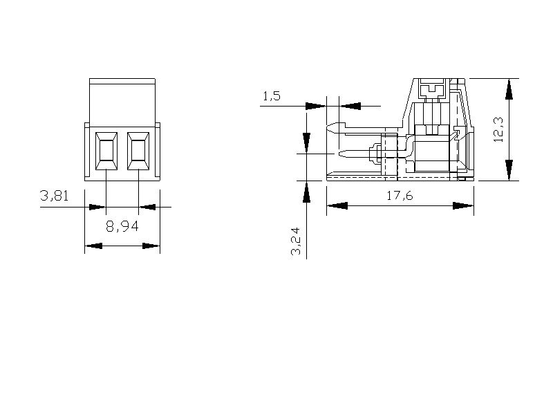 PCB terminal block with screw connection socket with elevator mechanism3 polesMax. conductor cross section: 1.5mm²-16 AWGPin pitch: 3.81mmRated voltage: 250VRated current: 8A