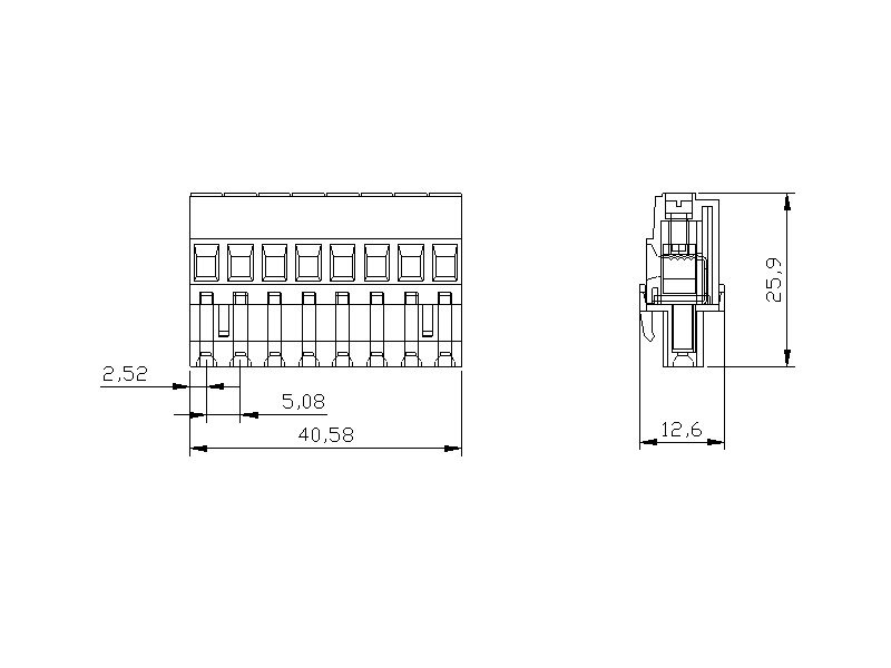 | SBDK 5.08-E1/8 | 5.08mm Male Pluggable Terminal Block 90° (Closed Type) - 8 Pins | ||