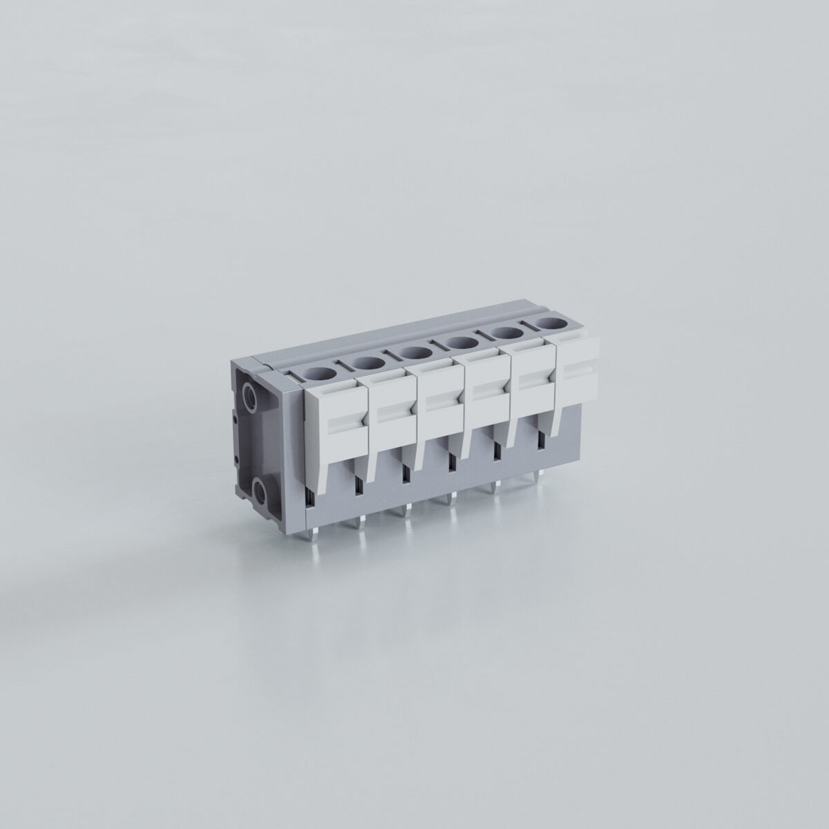 Spring-loaded modular PCB terminal block6 polesMax. conductor cross-section: 1.5mm²-16AWGPin pitch: 5.08×7.62mmRated voltage: 250VRated current: 10A