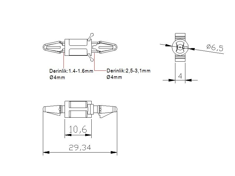 Delik çapı: Ø 4mmUzunluk: 10,6mmUygulama alanı: PCB-Pleksi