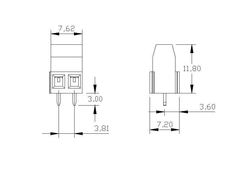 Asansör mekanizmalı vida bağlantılı modüler PCB klemensi2 kutupMax. İletken kesiti: 1.5mm²-16 AWGPim aralığı: 5.08mmNominal gerilim: 250VNominal akım: 10A