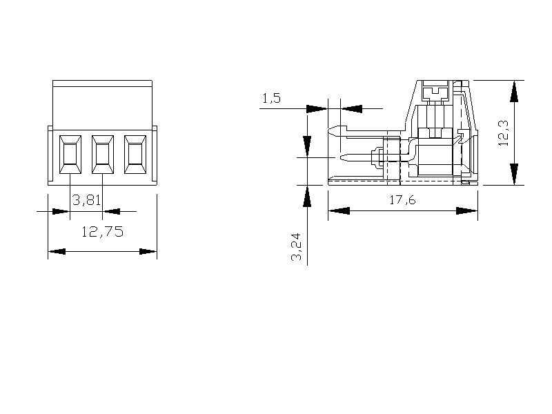 Asansör mekanizmalı vida bağlantılı soketli PCB klemensi3 kutupMax. iletken kesiti: 1,5mm²-16 AWGPim aralığı: 3,81mmNominal gerilim: 250VNominal akım: 8A