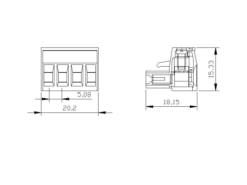 | RTKSK 5.08-2x4 | 5.08mm Ray Tipi Katlı Soket Klemens - 2x4 Pim |
