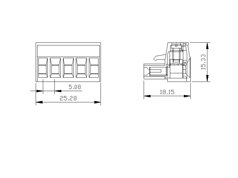 | SBDK 5.08-E1/5 | 5.08mm Soketli Erkek Klemens 90° Kapalı - 5 Pim | ||