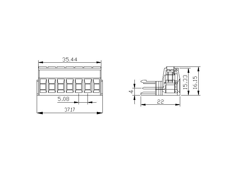 Asansör mekanizmalı vida bağlantılı soketli PCB klemensi7 kutupMax. iletken kesiti: 2,5mm²-14 AWGPim aralığı: 5,08mmNominal gerilim: 250VNominal akım: 16A