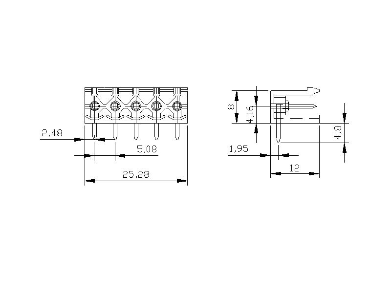 5.08mm Soketli Erkek Klemens 90° Açık – 5 Pim