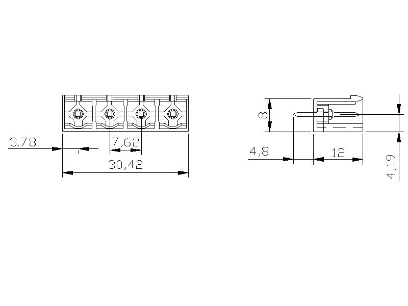 | SBDK 7.62-DD/4 | 7.62mm Dik Dişi Soket Klemens - 4 Pim |