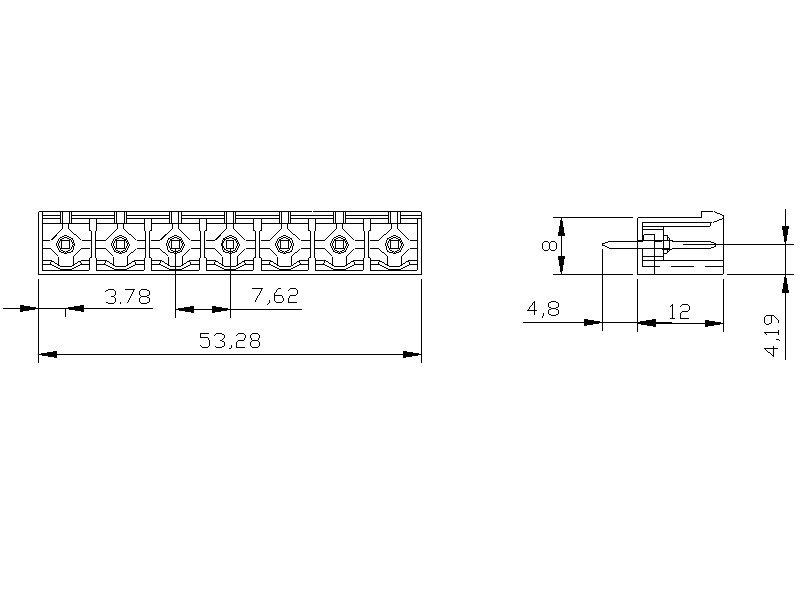 Asansör mekanizmalı vida bağlantılı soketli PCB klemensi7 kutupMax. iletken kesiti: 2,5mm²-14 AWGPim aralığı: 7,62mmNominal gerilim: 400VNominal akım: 16A